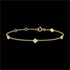 Un bracelet de fleurs étincellantes dont les pétales s'ouvrent pour découvrir un coeur de diamant éternel. Ce bracelet chaîne est divin à porter tous les jours ou pour les grandes occasions. Bracelet de longueur réglable: 17cm, 16cm, 14.5cm. Motif de 4.2mm longueur et 4.2mm de hauteur. 3 diamants : 0.03 carat - Or jaune (18 carats = 750/-): 1.3 g. Plus dimensions