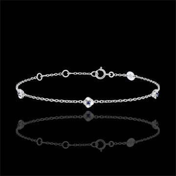 Un bracelet de fleurs étincelantes dont les pétales s'ouvrent pour découvrir un coeur de saphir éternel. Ce bracelet chaîne est divin à porter tous les jours ou pour les grandes occasions. Bracelet de longueur réglable: 17cm, 16cm, 14.5cm. Motif de 4.2mm longueur et 4.2mm de hauteur. Or blanc (18 carats = 750/-): 1.3 g. Saphir bleu : 3 - Total: 0.03 carat Plus dimensions