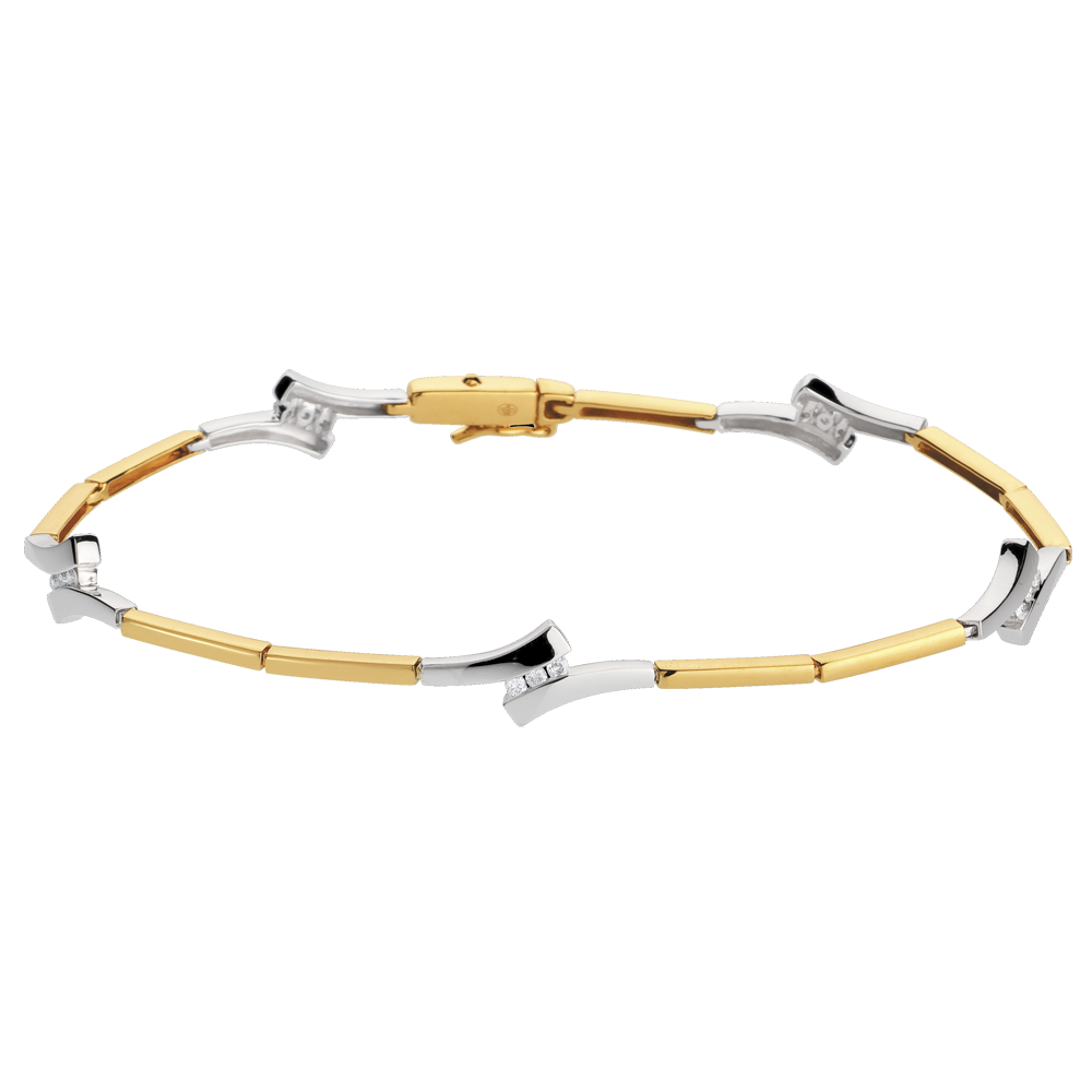 un bracelet en or jaune parsemé de mouvements d'or blanc qui enserrent un diamant