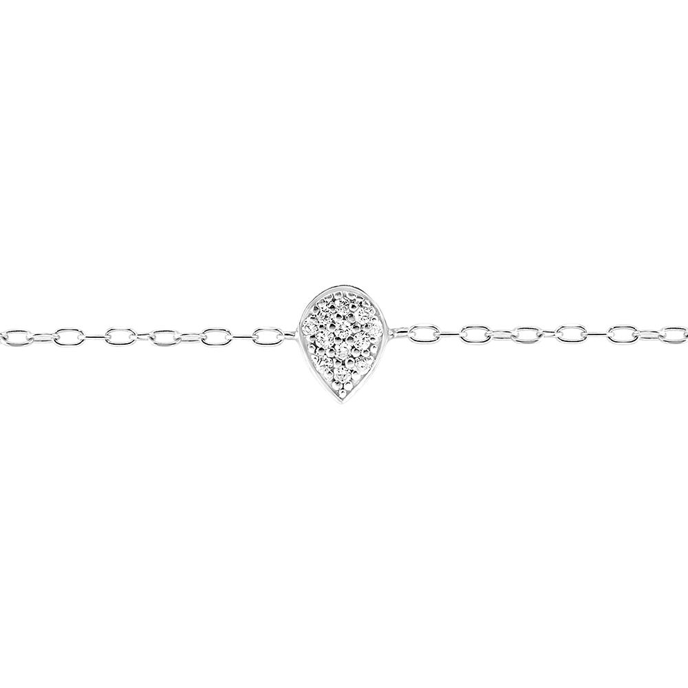 Une goutte délicatement pavée de 12 diamants blancs (0,048 ct, qualité HSI) orne ce bracelet chaîne en or blanc 9 carats. Ce modèle minimaliste et pur s’inspire de la nature et des émotions, offrant une élégance discrète et raffinée. La longueur du bracelet est réglable entre 16 et 18 cm pour un confort optimal au quotidien.… Voir plus Infos techniques