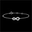 Ce bracelet délicat en or blanc 9 carats présente un motif symbole de l'infini serti de 21 diamants blancs, totalisant 0,11 carat. Symbole d'éternité, ce bijou élégant se porte au poignet grâce à une chaîne ajustable en trois longueurs (18, 17 et 16 cm), assurant un confort optimal. Son design pavé met en valeur la finesse et l’éclat des diamants, pour un bijou moderne et raffiné à offrir ou à s'offrir.… Voir plus Infos techniques
