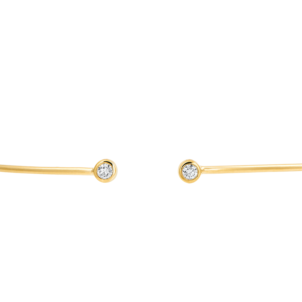 Un bracelet jonc fin et élégant orné de deux délicats diamants. A porter seul ou accumulé avec la version or blanc et or rose.