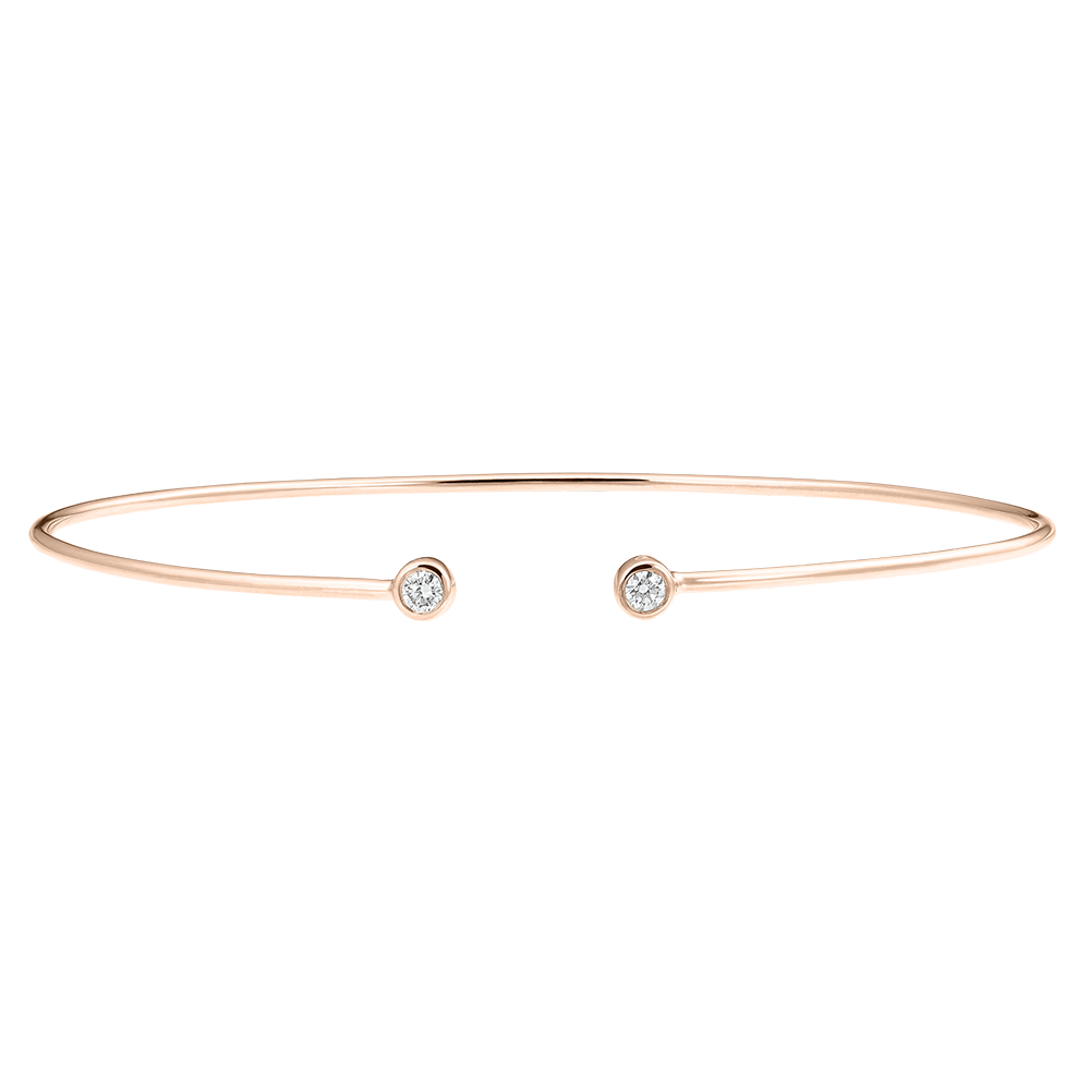 Bracelet Jonc Ouvert Fraîcheur - Toi et Moi - or rose 9 carats et diamants
