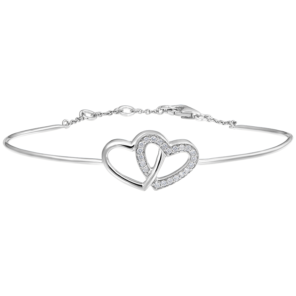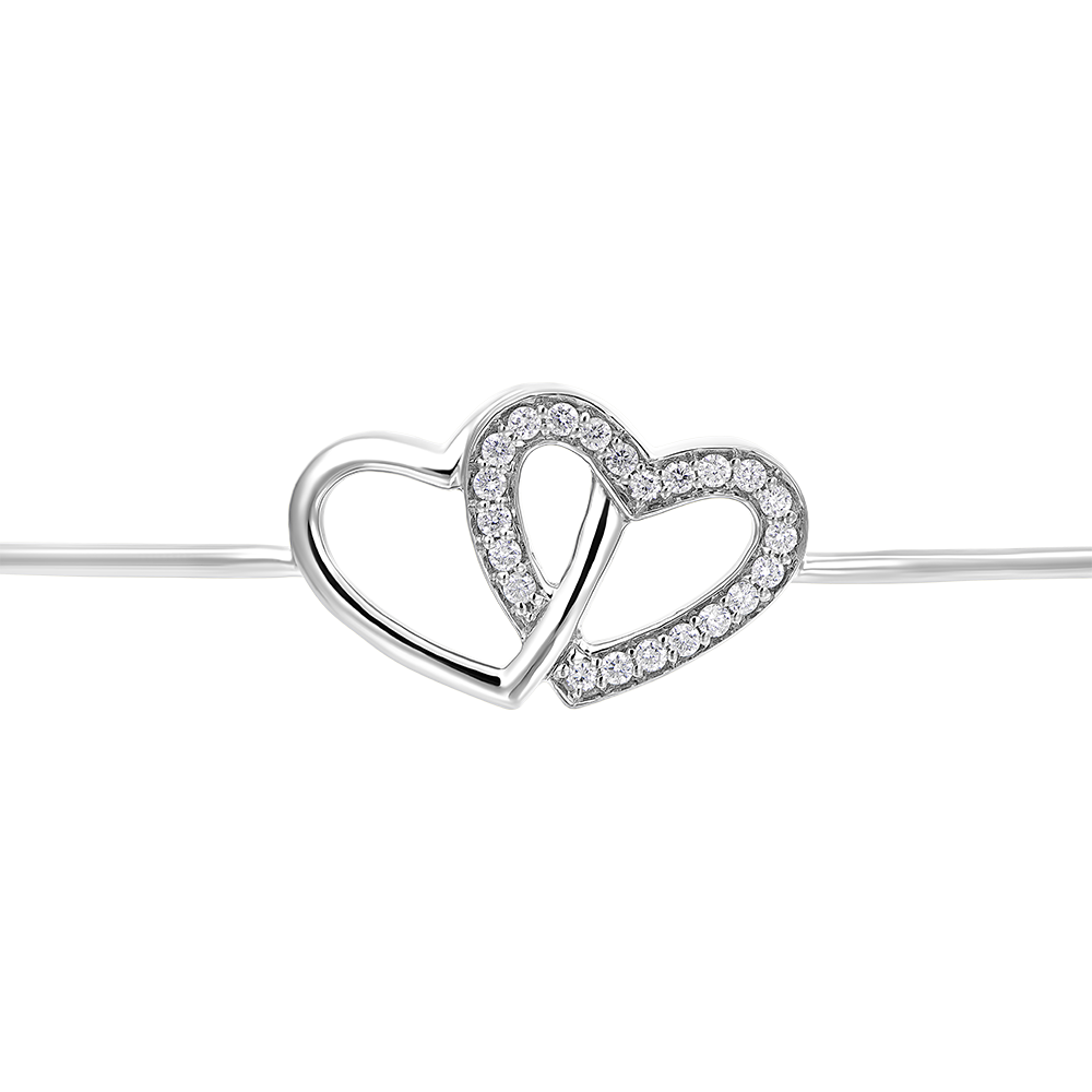 Bracelet Jonc Précieux Secret - Cœurs Amoureux - or blanc 9 carats et diamants