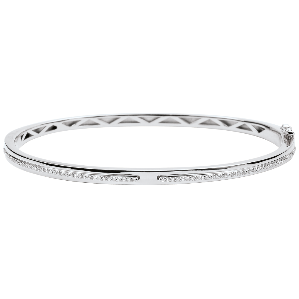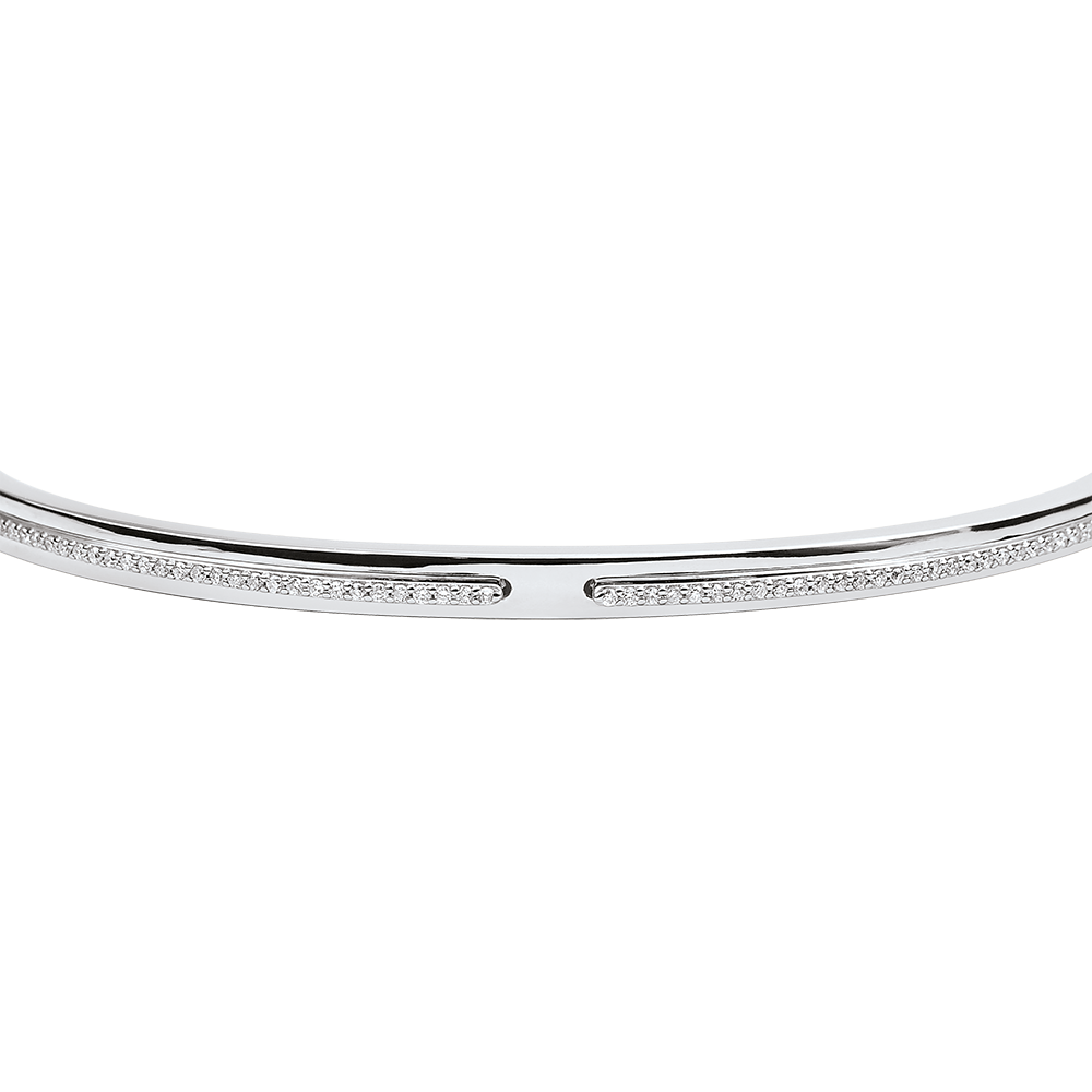 Deux lignes de diamants sont unies comme une promesse d'éternité dans un bracelet jonc en or blanc.