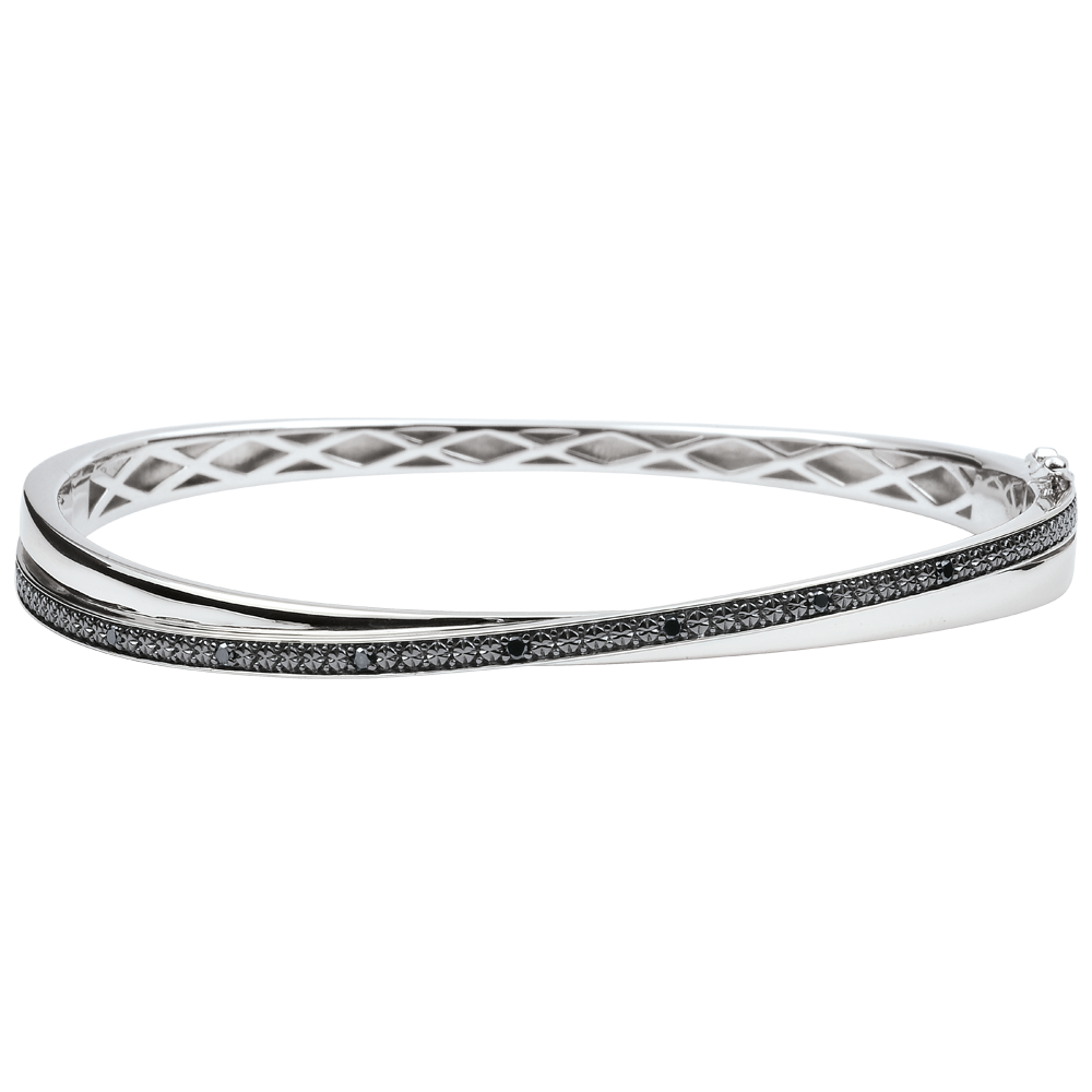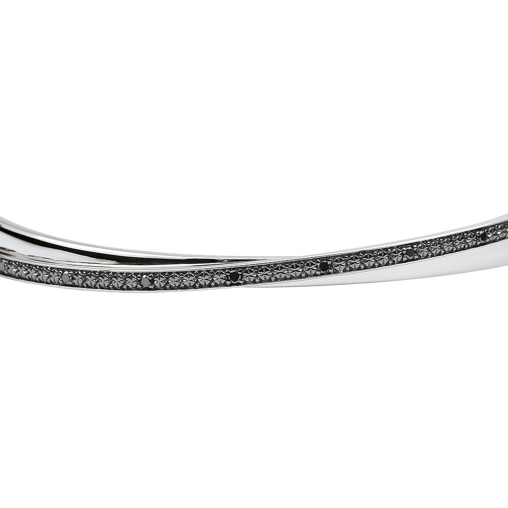 Bracelet jonc composé d'un anneau en or blanc subtilement entremêlé à un anneau entièrement pavé de diamants noirs.