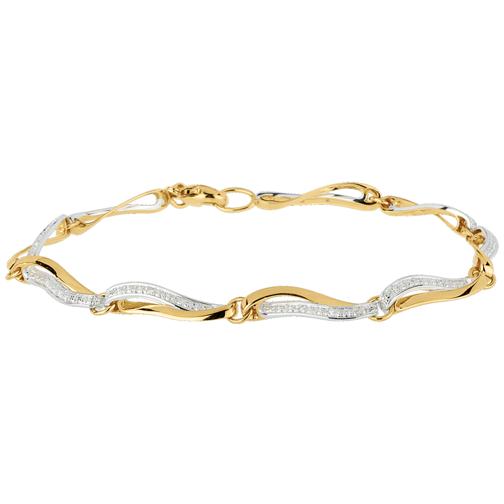 bracelet ondes du Nil deux ors et diamants - or blanc et or jaune 18 carats