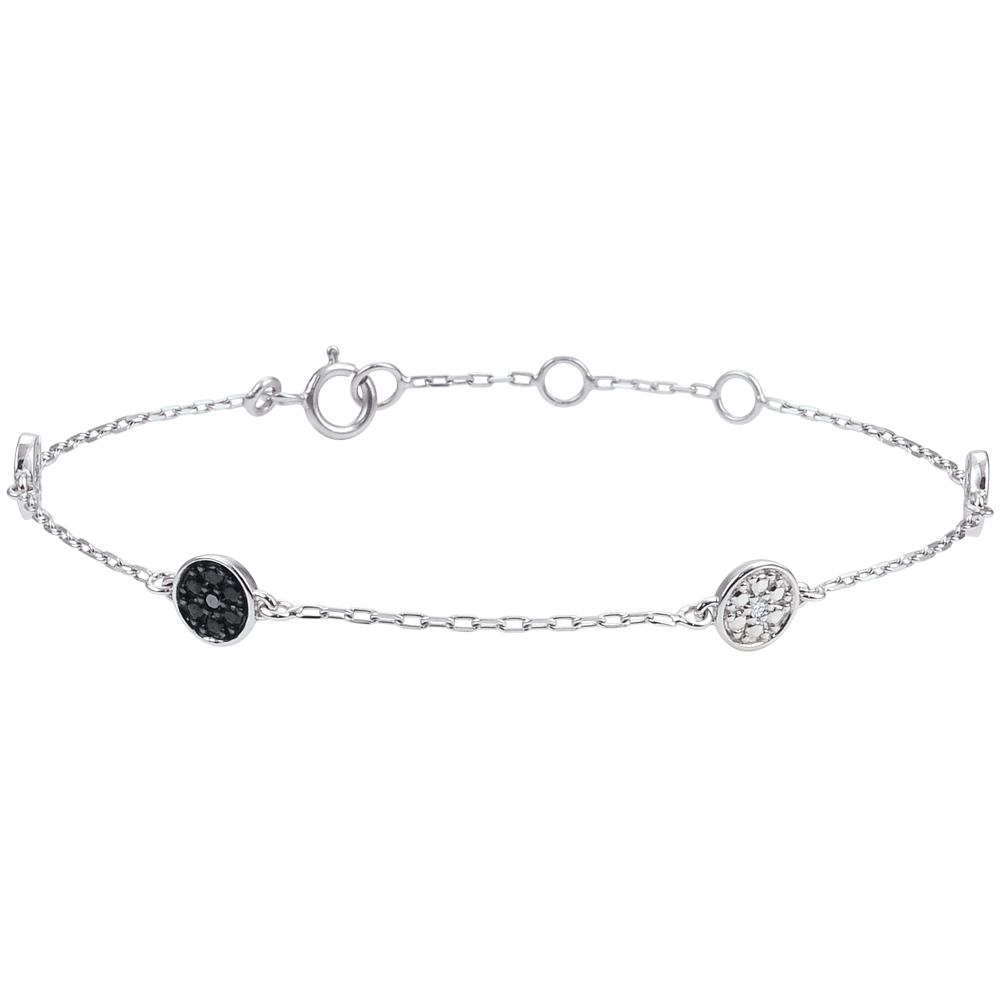 Bracelet or blanc 9 carats Myriade d'étoiles - diamants blancs et diamants noirs