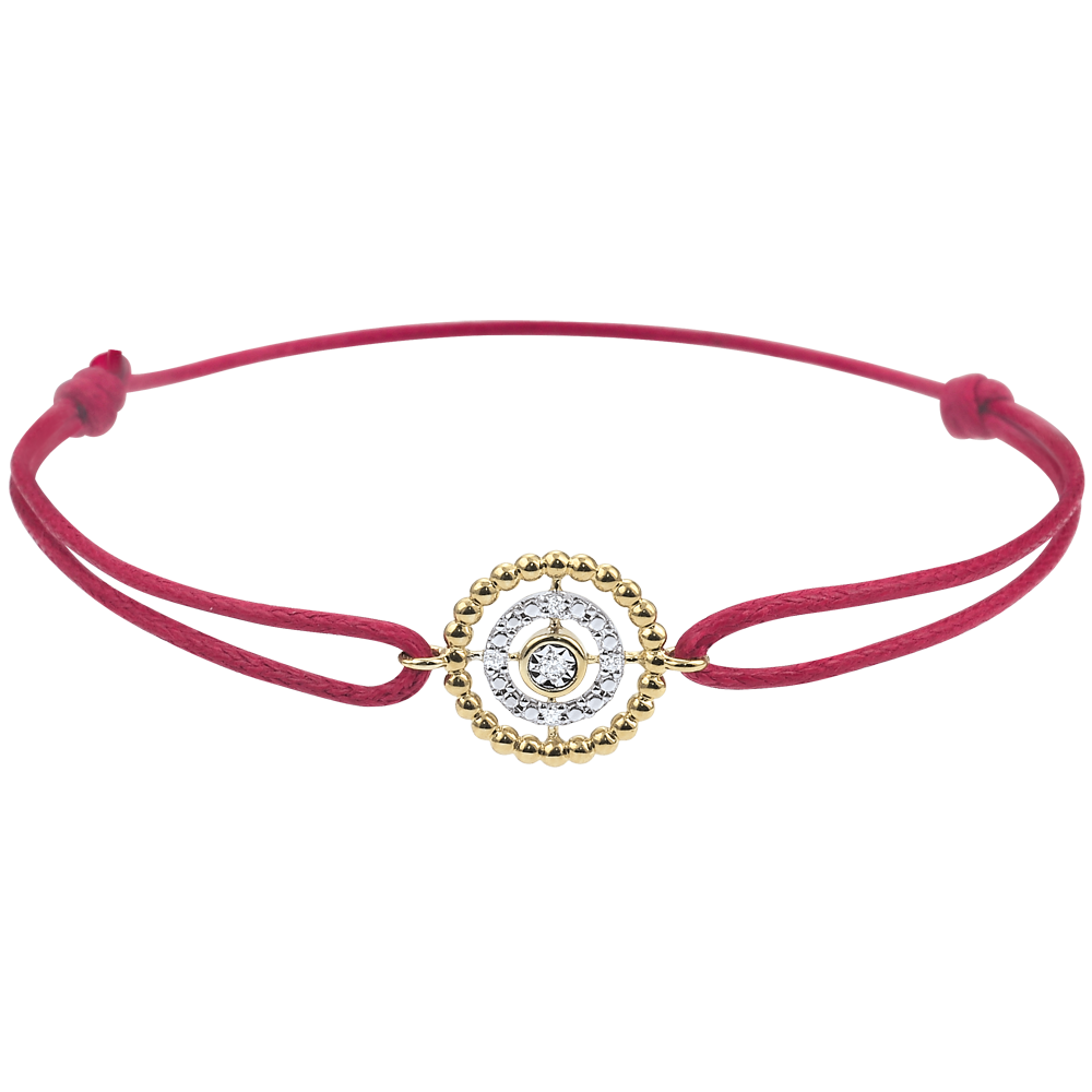 Bracelet Fleur de Sel - cercle - or jaune 9 carats - cordon rouge