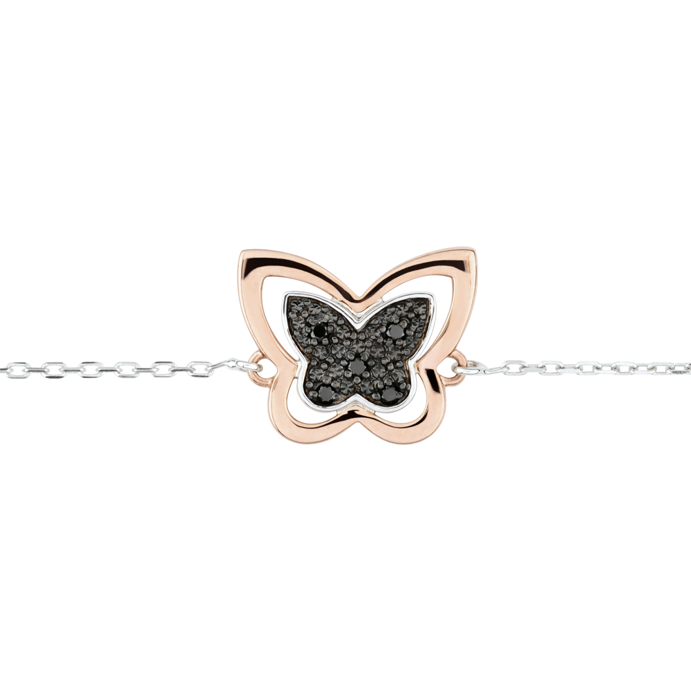Bracelet Balade Imaginaire - Papillon Lunaire - or blanc et or rose 9 carats et diamants noirs