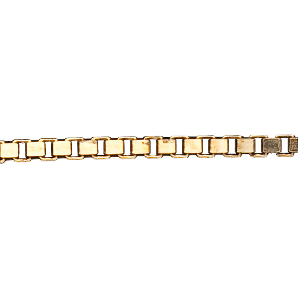 La chaîne vénitienne, enchaînement de petits cubes, procure un scintillement unique à votre cou. L'or ainsi designé crée la plus brillante des chaînes. Longueur: 45 cm. Largeur: 0.85 mm.