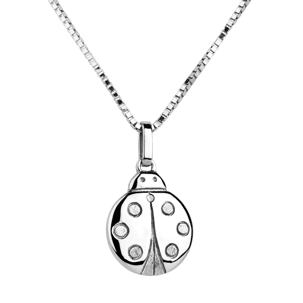 Une coccienelle en or blanc toute douce et ronde pour lui porter bonheur. Son septième point est un diamant. Grand Modèle. Livré sans chaîne. 1 diamant : 0.05 carat - Or blanc (18 carats = 750/-): 1.4 g.Plus dimensions