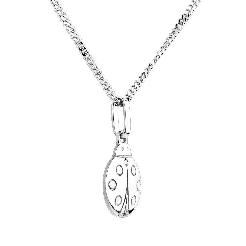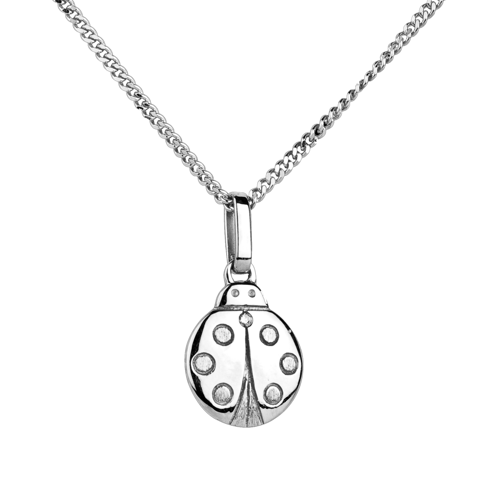 Une coccienelle en or blanc toute douce et ronde pour lui porter bonheur. Son septième point est un diamant. Petit Modèle. Livré sans chaîne. 1 diamant : 0.03 carat - Or blanc (18 carats = 750/-): 0.7 g. Plus dimensions