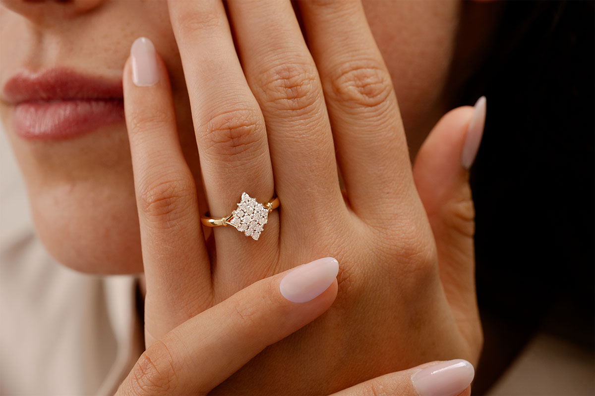 EN SAVOIR PLUSUn cluster est une composition de petits diamants réunis pour créer l’effet d’une pierre plus grande, avec un éclat démultiplié et un excellent rapport qualité-prix.