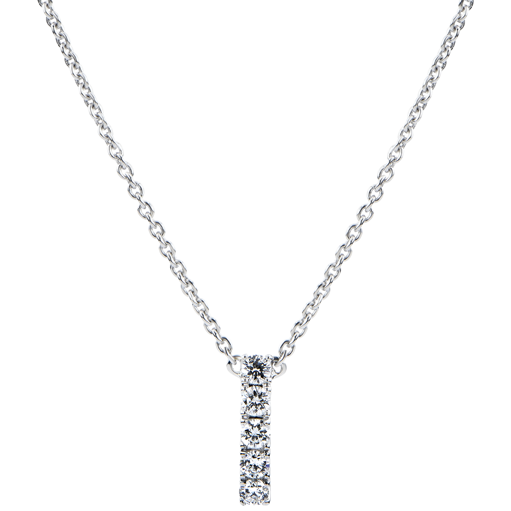 Cartouche de 5 diamants monté sur chaîne de 42 cm (+ 3 cm de rallonge), pour un pendentif fin et discret, lové au creu du cou.