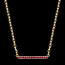 Découvrez ce collier délicat en or jaune 9 carats, sublimé par une ligne graphique de quatorze rubis synthétiques rouges intenses. Son design minimaliste met en valeur l’éclat vibrant des pierres, capturant la lumière avec finesse.