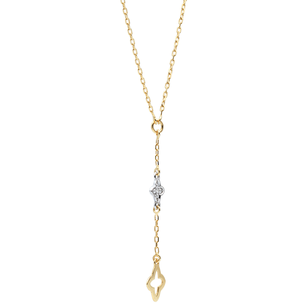 Ce collier en forme de Y marie harmonieusement l'or blanc et l'or jaune 9 carats, rehaussé d'un diamant blanc délicat. Son design géométrique minimaliste évoque une élégance naturelle et contemporaine. Issu de la collection Fraicheur, il s'inspire de la beauté et de la diversité de la nature pour un bijou subtil et raffiné.… Voir plus Infos techniques