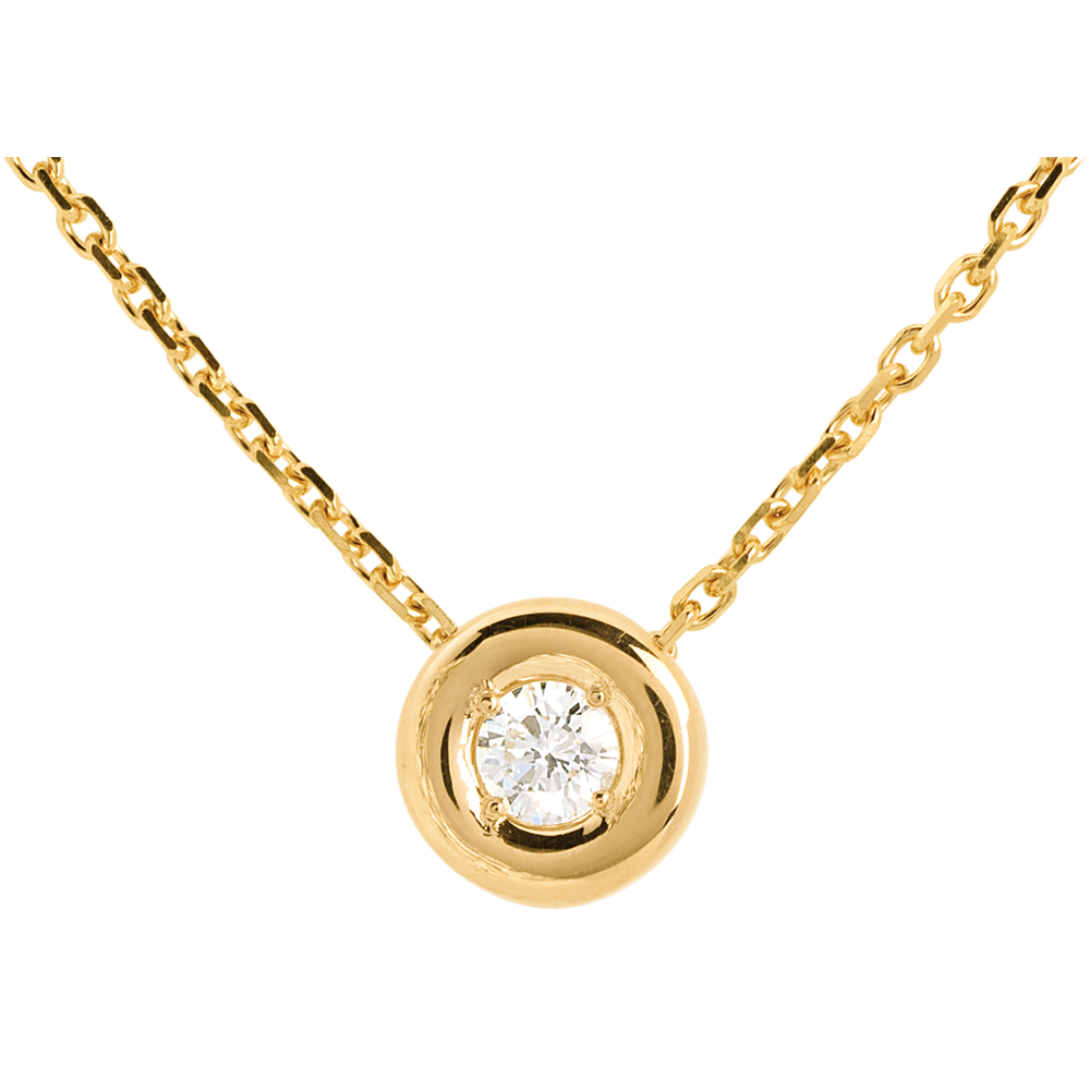 Un diamant lové au coeur d'un calice or jaune tout en rondeur.