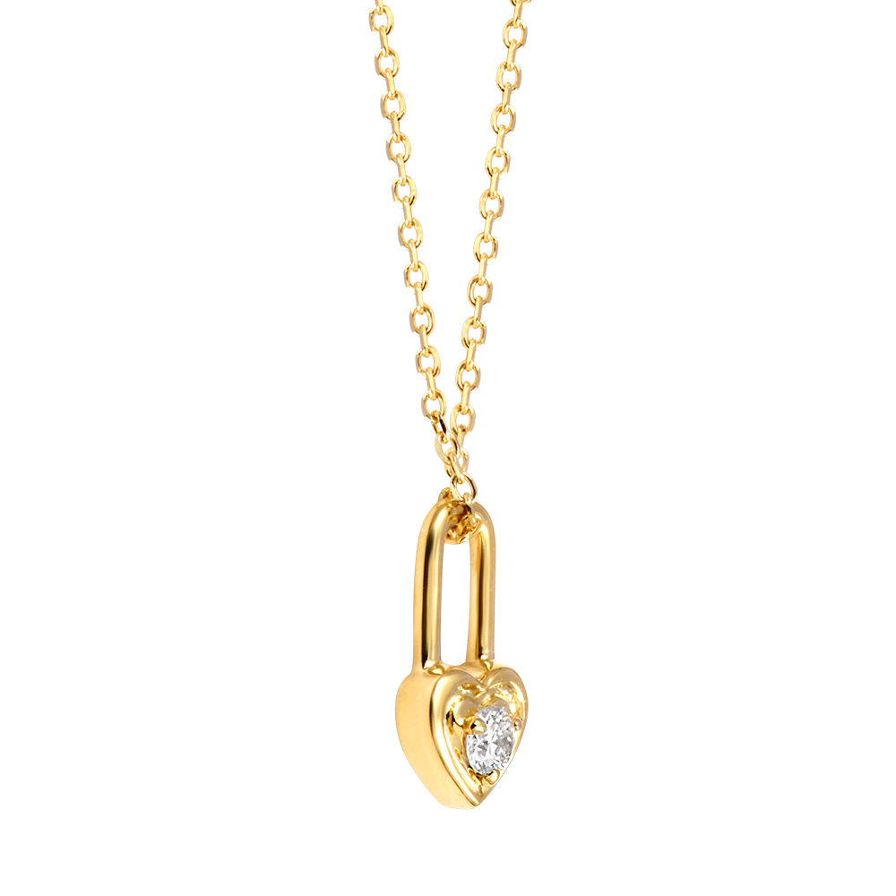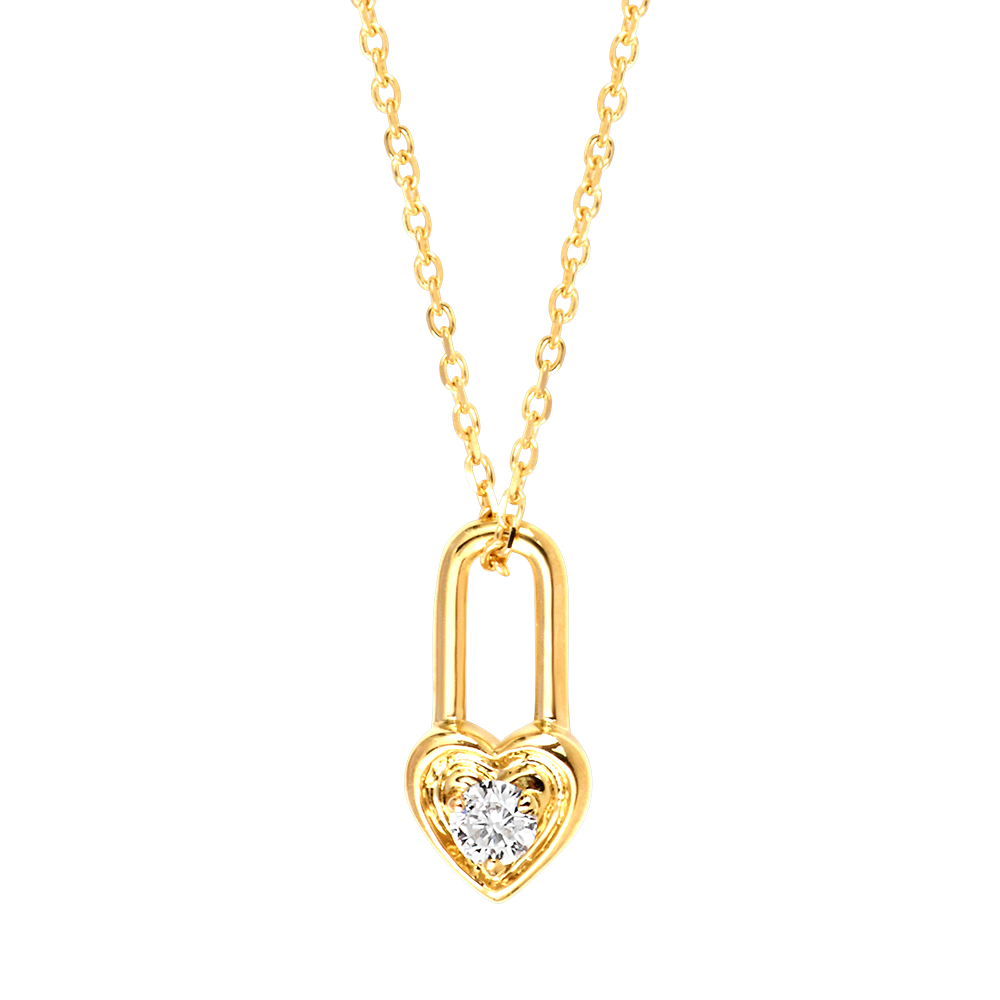 Un cœur ajouré évoquant un cadenas précieux, délicatement orné d’un diamant synthétique en son centre. Ce bijou incarne un symbole d’amour scellé, à la fois intime et lumineux.