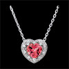 Un précieux coeur en or blanc et incrusté de diamants se fait l'écrin d'une somptueuse tourmaline rose. Avec chaîne avec double position 42cm et 45cm en or 18 carats. 10 diamants : 0.06 carat - Or blanc (18 carats = 750/-): 2.1 g. Tourmaline rose : 1 - Total: 0.83 carat Plus dimensions