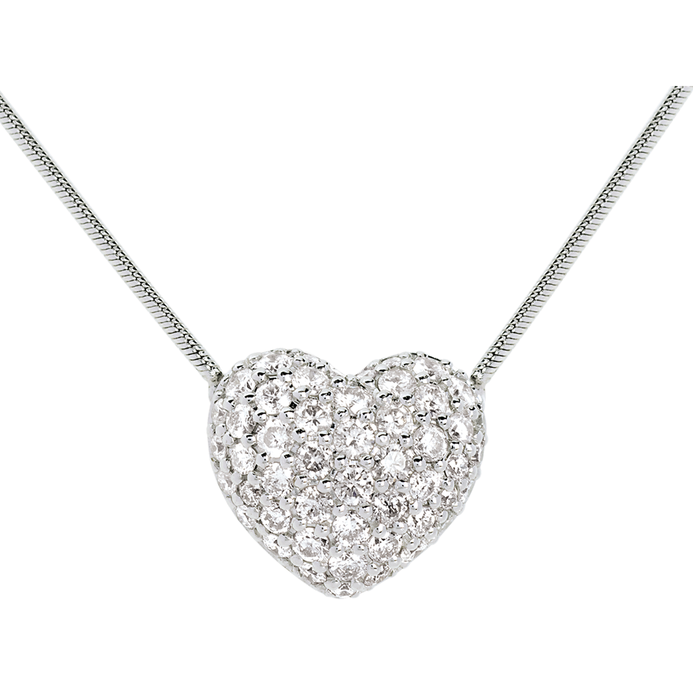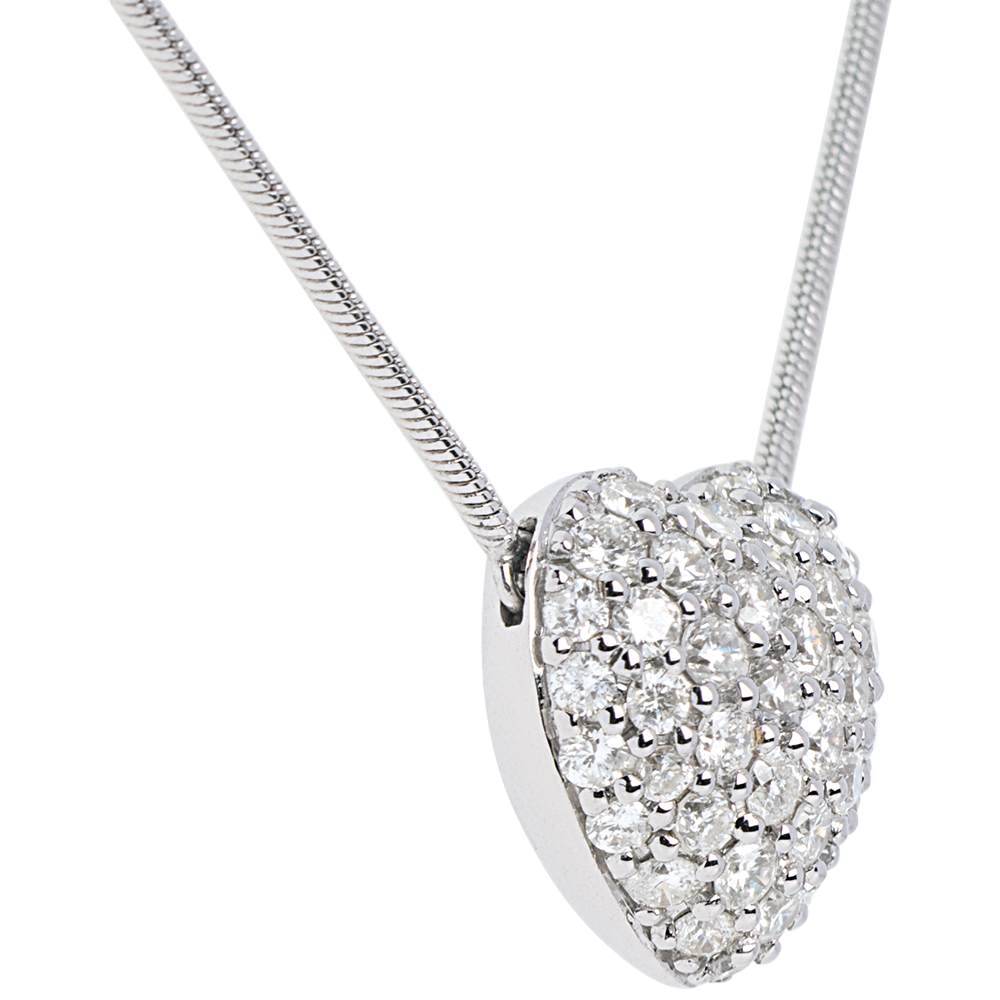 Collier coeur pavé or blanc 18 carats - 0.85 carats - 50 diamants