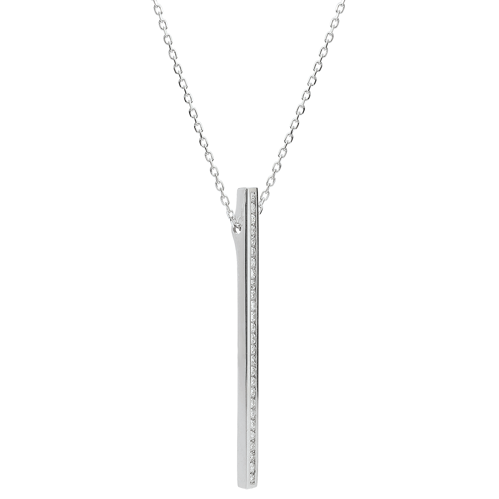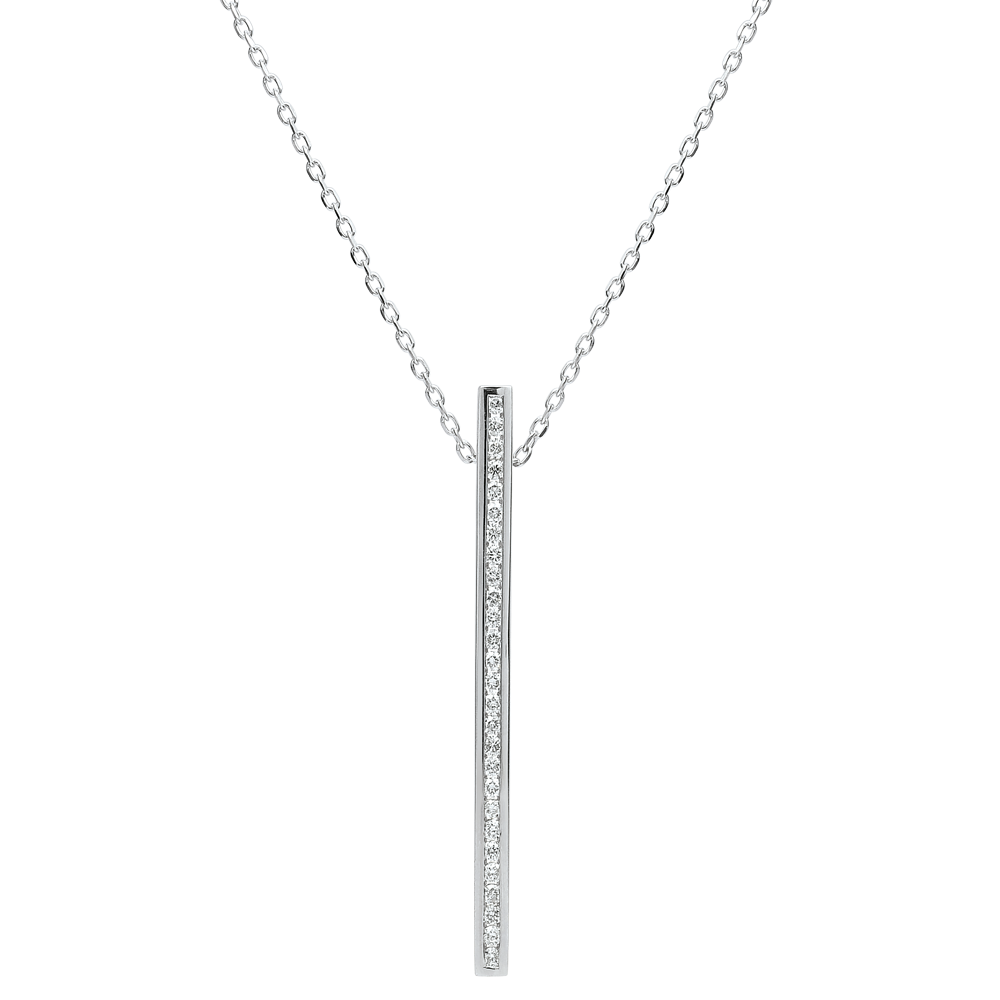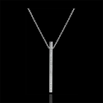 L'éclat iridescent d'un pavage diamants minutieux et raffiné, pour une touche d'éclat astral à la tombée du cou. Avec chaîne avec double position 42cm et 45cm en or 9 carats. 27 diamants : 0.27 carat - Or blanc (9 carats = 375/1000): 2.5 g. Plus dimensions
