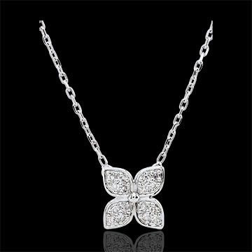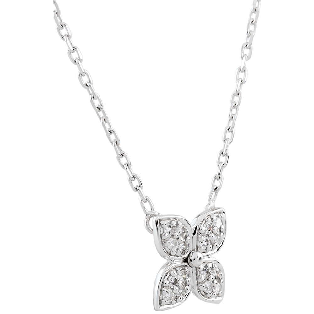 Collier Fleur d'éternité - 16 diamants - or blanc 9 carats
