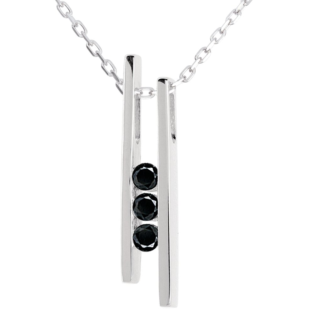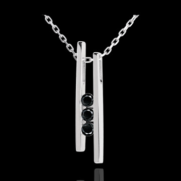 Toute la mesure du diapason or blanc et 3 diamants noirs, pour un équilibre et une harmonie parfaite. Avec chaîne avec double position 42cm et 45cm en or 18 carats. 3 diamants : 0.1 carat - Or blanc (18 carats = 750/-): 2.5 g. Diamant noir : 3 - Plus dimensions