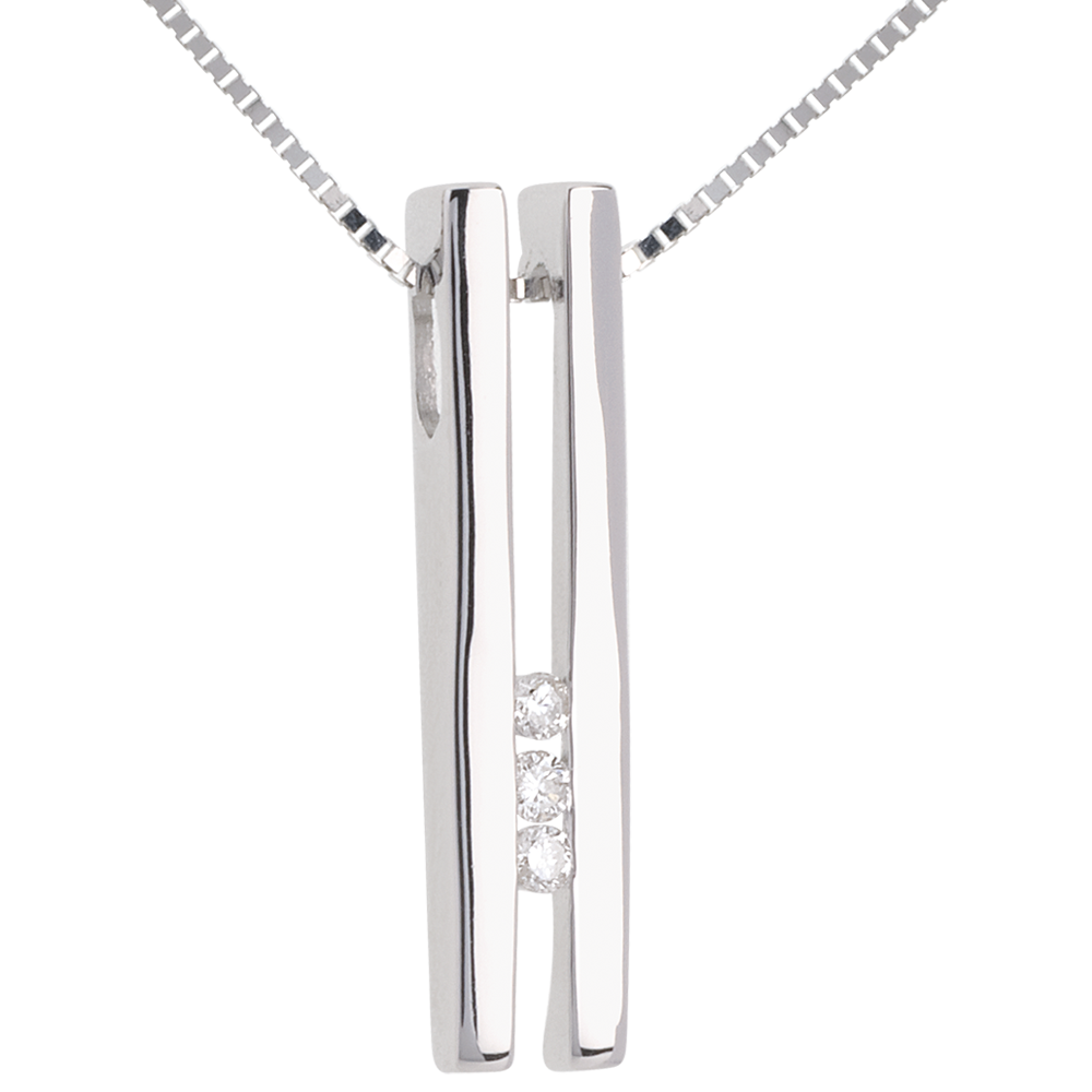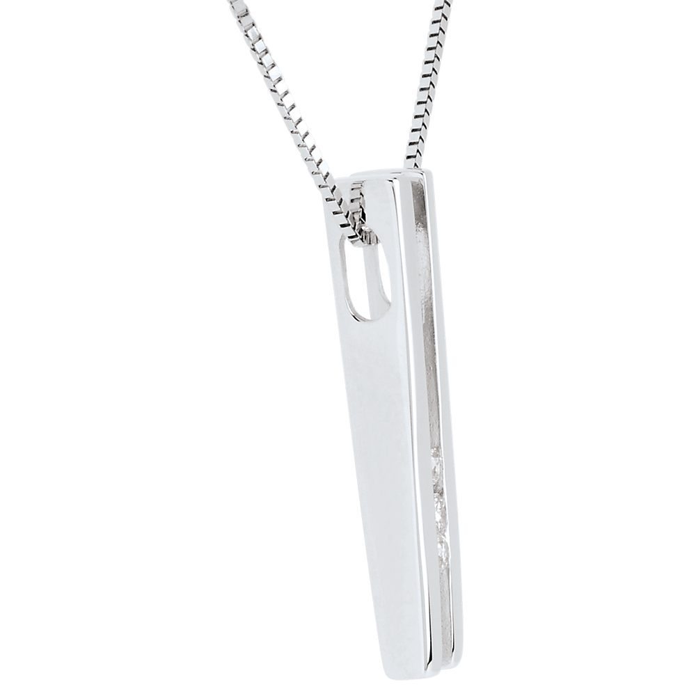 Toute la mesure du diapason or blanc 3 diamants, pour un équilibre et une harmonie parfaite. Avec chaîne avec double position 42cm et 45cm en or 18 carats. 3 diamants : 0.04 carat - Or blanc (18 carats = 750/-): 2.5 g. Plus dimensions