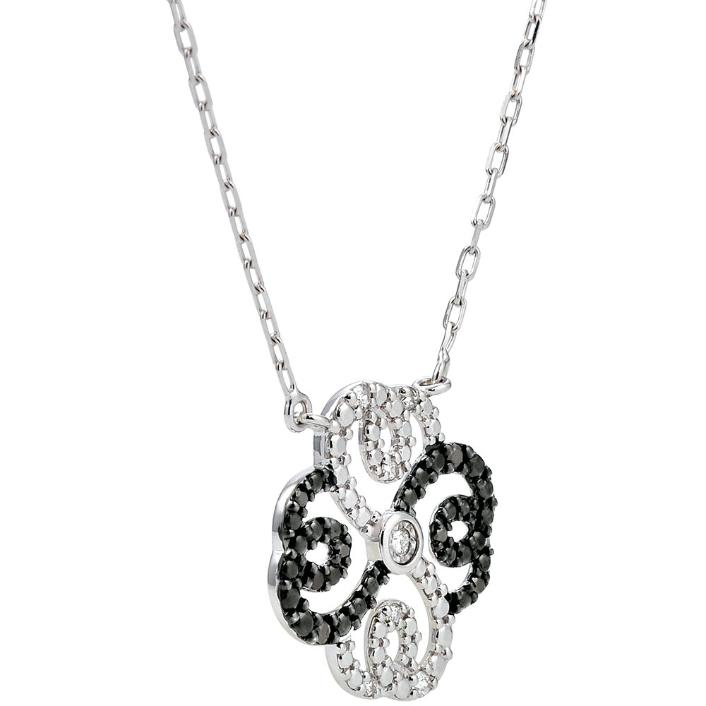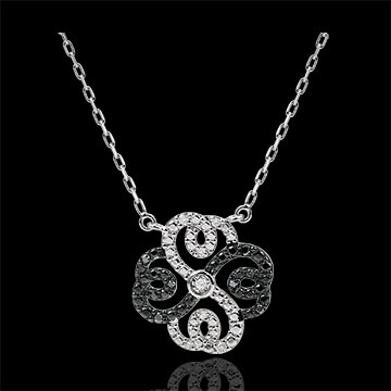 Collier Fraicheur - Trèfle Arabesque - or blanc 9 carats diamants blancs et diamants noirs