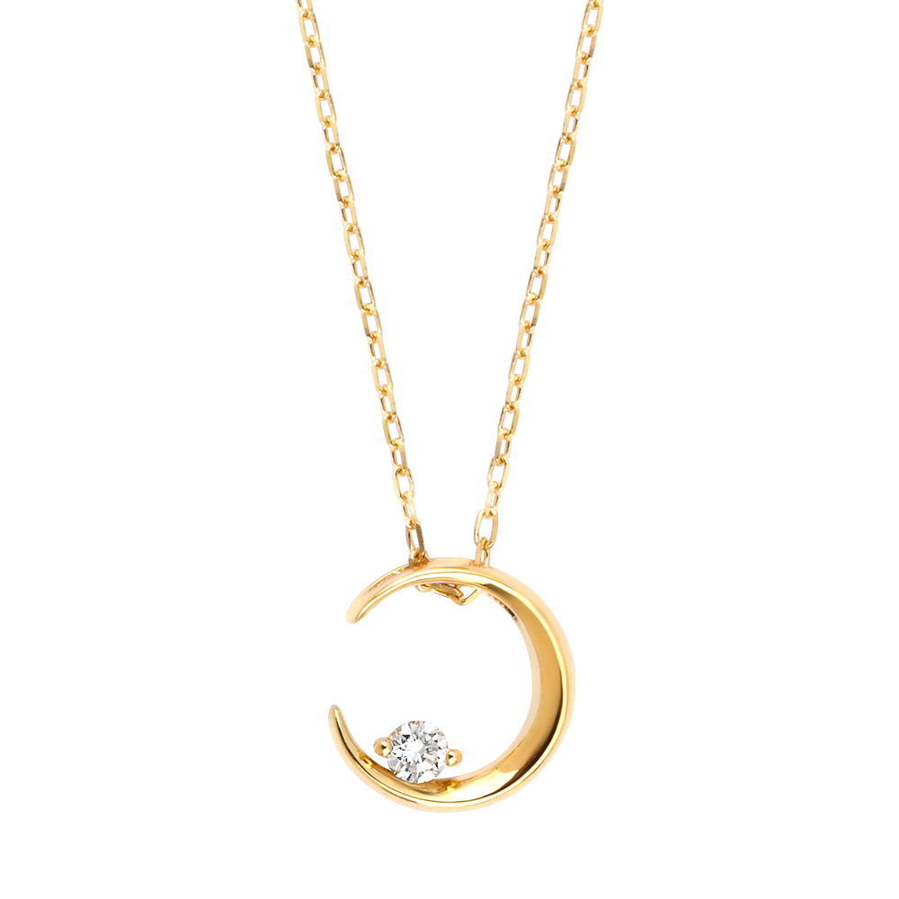 Une lune dorée en croissant embrassant un diamant scintillant. Ce collier délicat et céleste évoque la beauté discrète de la nuit.