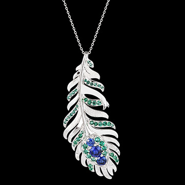 Collier Panache - Altesse - or blanc 9 carats avec saphirs et émeraudes synthétiques
