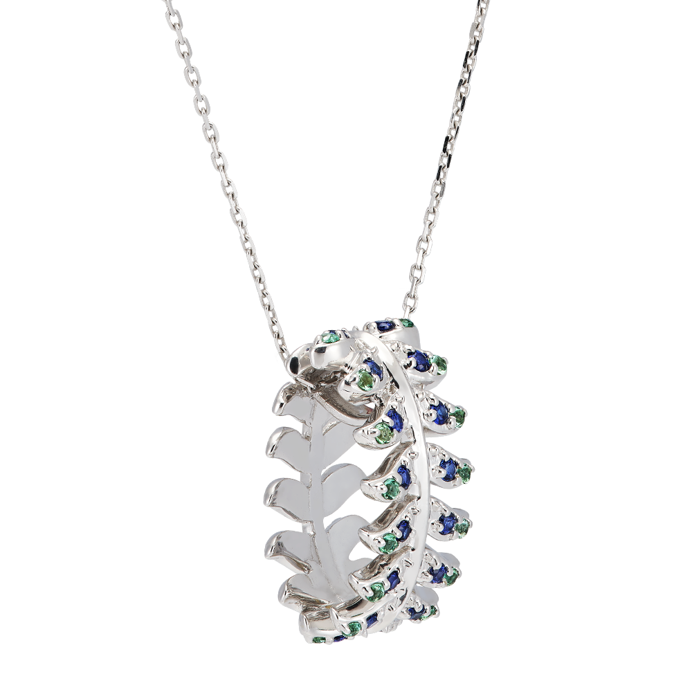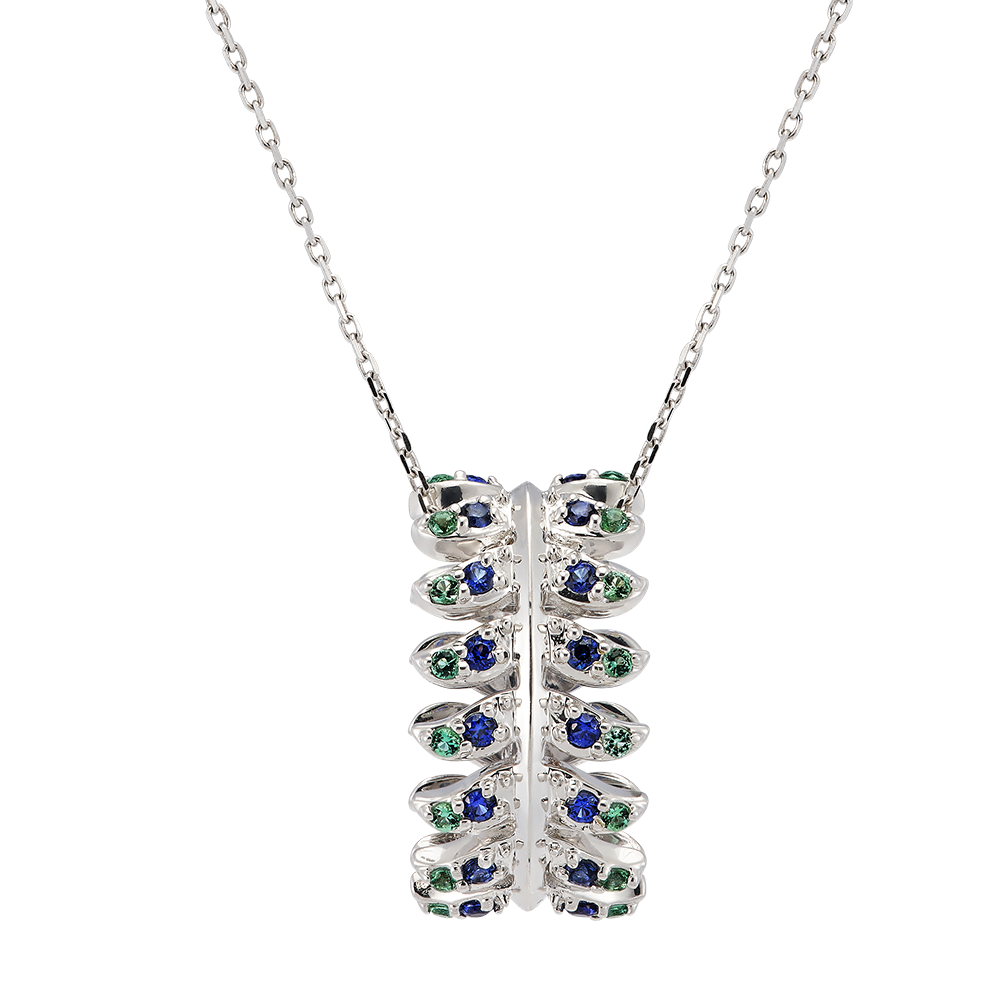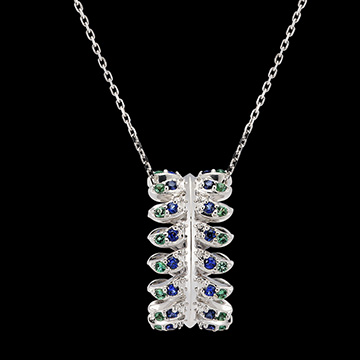 Collier Panache - Révérence - or blanc 9 carats avec saphirs et émeraudes synthétiques