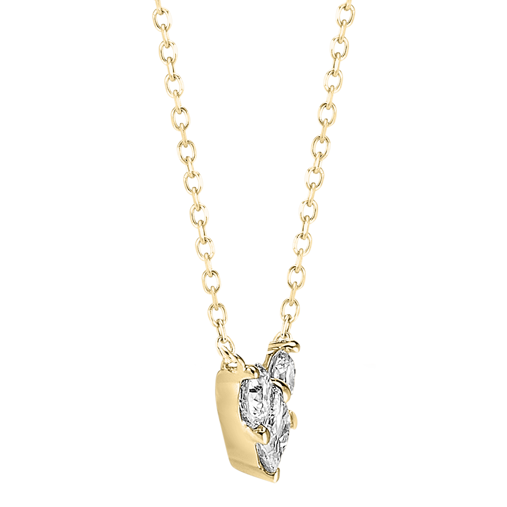 Un cœur pavé de 3 diamants délicatement posés sur un collier or jaune. Cet icone de la joaillerie est revisitée par Edenly avec poésie pour une déclaration d'amour des plus intenses. Oh, lovely! Avec chaîne avec double position 42cm et 45cm en or 18 carats. 3 diamants : 0.29 carat - Or jaune (18 carats = 750/-): 1.4 g. Cluster de diamants naturels : 3 - Plus dimensions