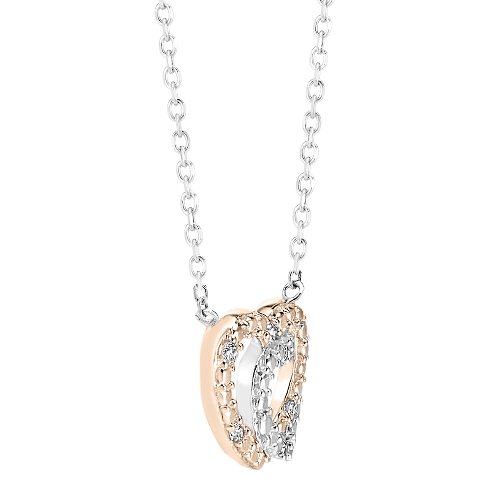 Collier Précieux Secret - Cœur Complices - or blanc et or rose 9 carats et diamants