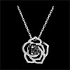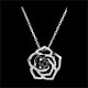 Une rose toute en contours habrite un coeur précieux de diamants noirs. Avec chaîne avec double position 42cm et 45cm en or 18 carats. Or blanc (18 carats = 750/-): 2.7 g. Diamant noir : 7 - Total: 0.06 carat Plus dimensions