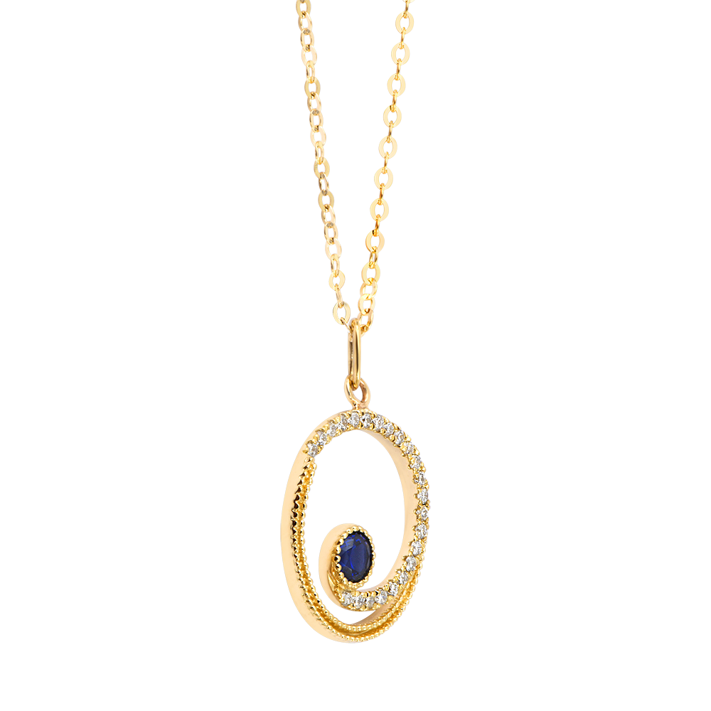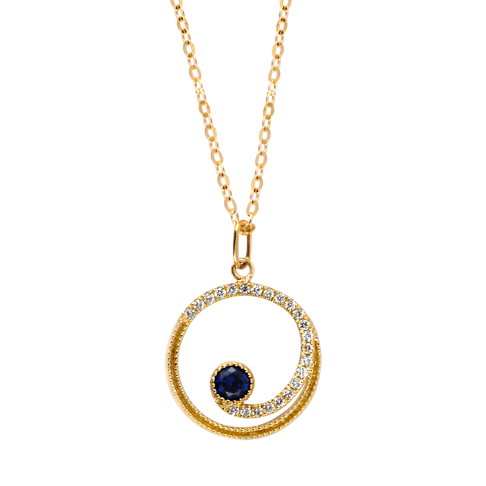 Collier Serenna – Or jaune 9 carats, saphir et diamants synthétiques