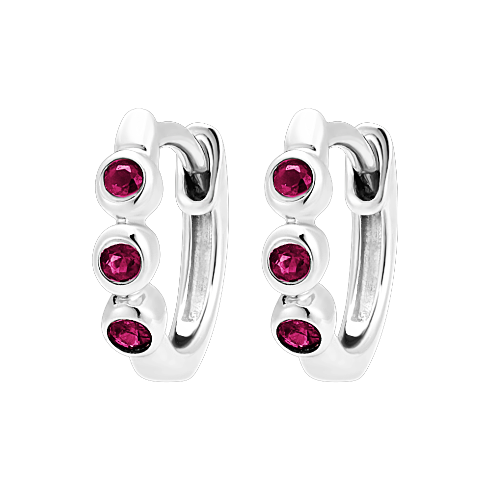 Ces créoles Trio Rubis en or blanc 9 carats captivent par leur jeu de couleurs vives et raffinées.