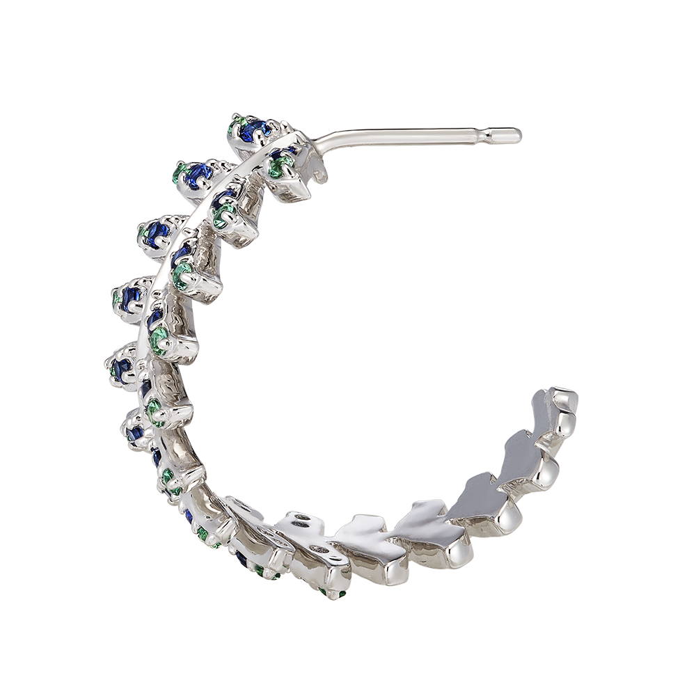 Créoles Panache - Révérence - or blanc 9 carats avec saphirs et émeraudes synthétiques