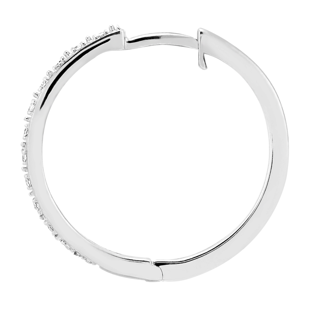 Une paire de créoles or blanc semi pavées pour une touche d'éclatant et de modernité. Anneau de 18mm de diamètre