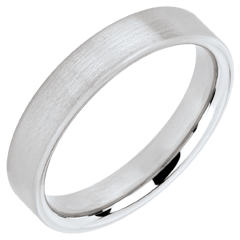 Une élégante paire d'alliances pour elle & lui. Un anneau tour complet serti griffe composé 38 diamants de 0.57 carat pour madame, un anneau ruban finition toilée en or blanc de 4mm de largeur pour monsieur. Or blanc (18 carats = 750/-): 0 g. Plus dimensions