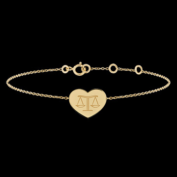 Bracelet médaille coeur gravée - Balance - or jaune 9 carats - Collection Zodiac Yours - Edenly Yours