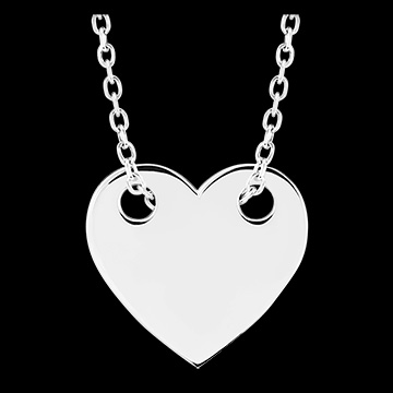 Collier bouton cœur à graver Coeur - Or blanc 9 carats