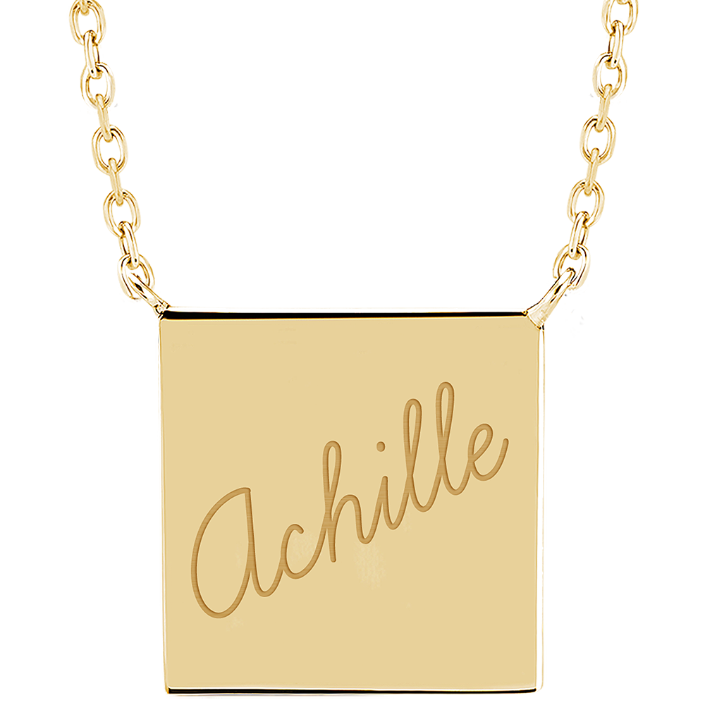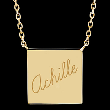 Collier médaille carrée gravée - Or jaune 9 carats