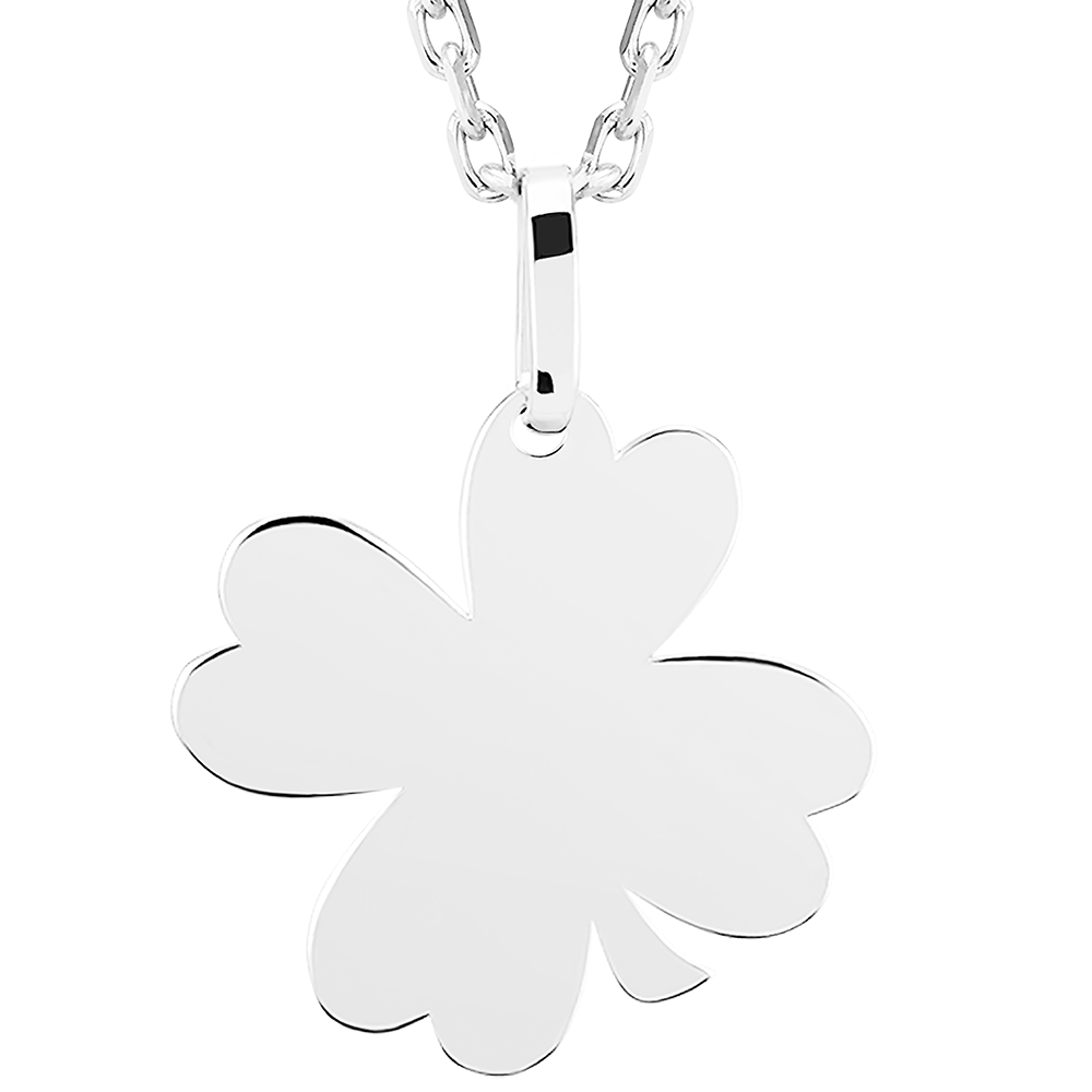 Médaille trèfle à graver Trèfle - Or blanc 9 carats