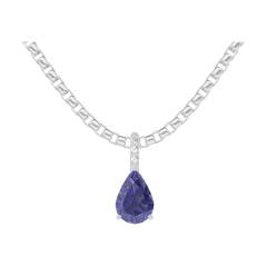 « L'ATELIER » Nº206664Pendentif Or blanc 9 carats - Saphir bleu Poire 0.3 carat - Sertissage Diamant - Chaîne Vénitienne 4.4 (12)