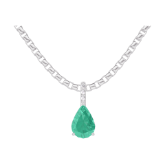 « L'ATELIER » Nº 207816Pendentif Or blanc 9 carats - Émeraude Poire 0.3 carat - Sertissage Diamant - Chaîne Vénitienne 4.9 (14)