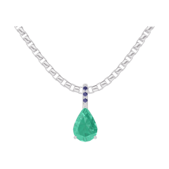 « L'ATELIER » Nº 207824Pendentif Or blanc 9 carats - Émeraude Poire 0.3 carat - Sertissage Saphir bleu - Chaîne Vénitienne 4.5 (14)