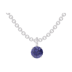 « L'ATELIER » Nº 205880Pendentif Or blanc 9 carats - Saphir bleu Rond 0.3 carat - Sertissage Diamant - Chaîne Forçat 4.6 (9)