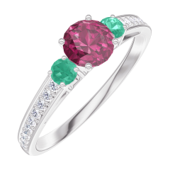 « L'ATELIER » Nº 160687Bague Or blanc 18 carats - Rubis Rond 0.3 carat - Pierres de côté Émeraude - Sertissage Diamant 4.5 (36)